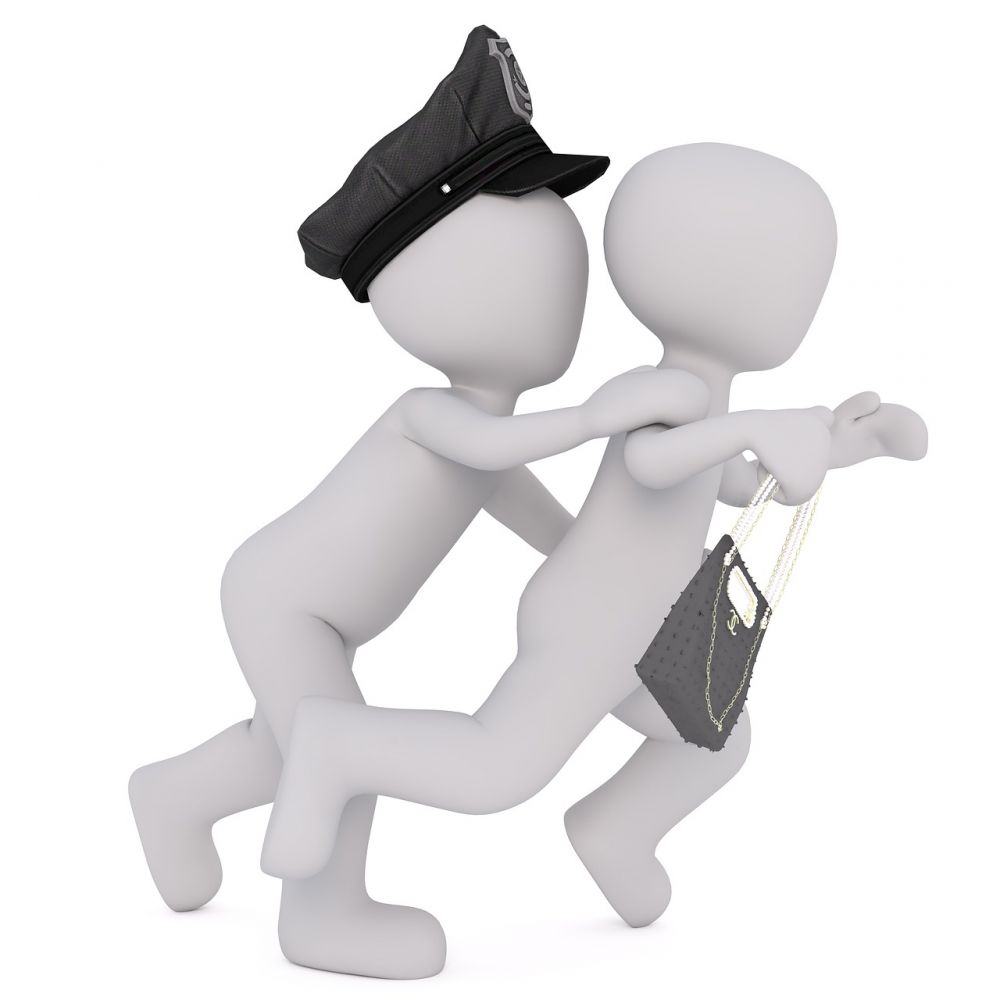 Policjanci odbierają złodziejom kradziony towar.